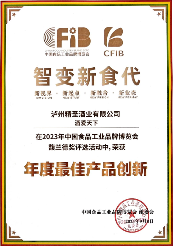 瀘州精圣酒業(yè)有限公司出品的“精圣”牌酒愛天下·禮品酒,具有諸香渾然添陳、內(nèi)斂渾厚飽滿、韻味甘綿雅凈,聞著香、喝著順、飲后心曠神怡的內(nèi)在品質,以及銀裝素雅剔透、生態(tài)玉白韻綠的外在裝潢,在此次展會中以其“蓋世酒仙、內(nèi)外兼修”的產(chǎn)品魅力優(yōu)勢脫穎而出,獲得馥蘭德獎2023年度產(chǎn)品創(chuàng)新獎。